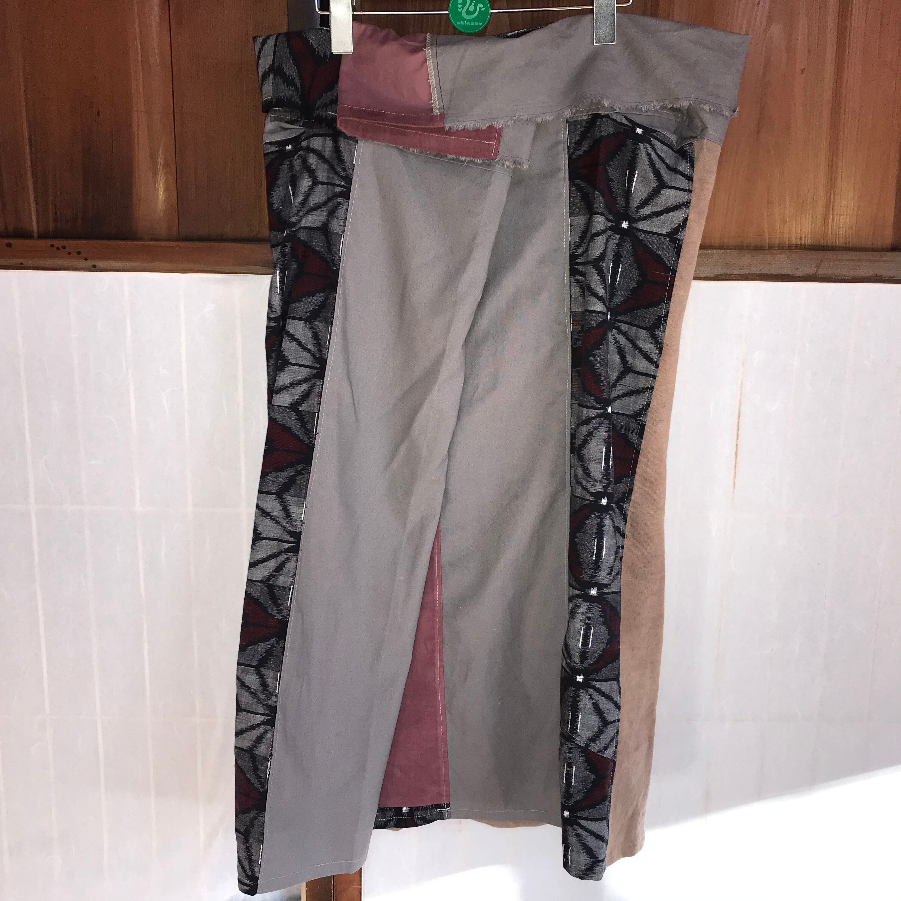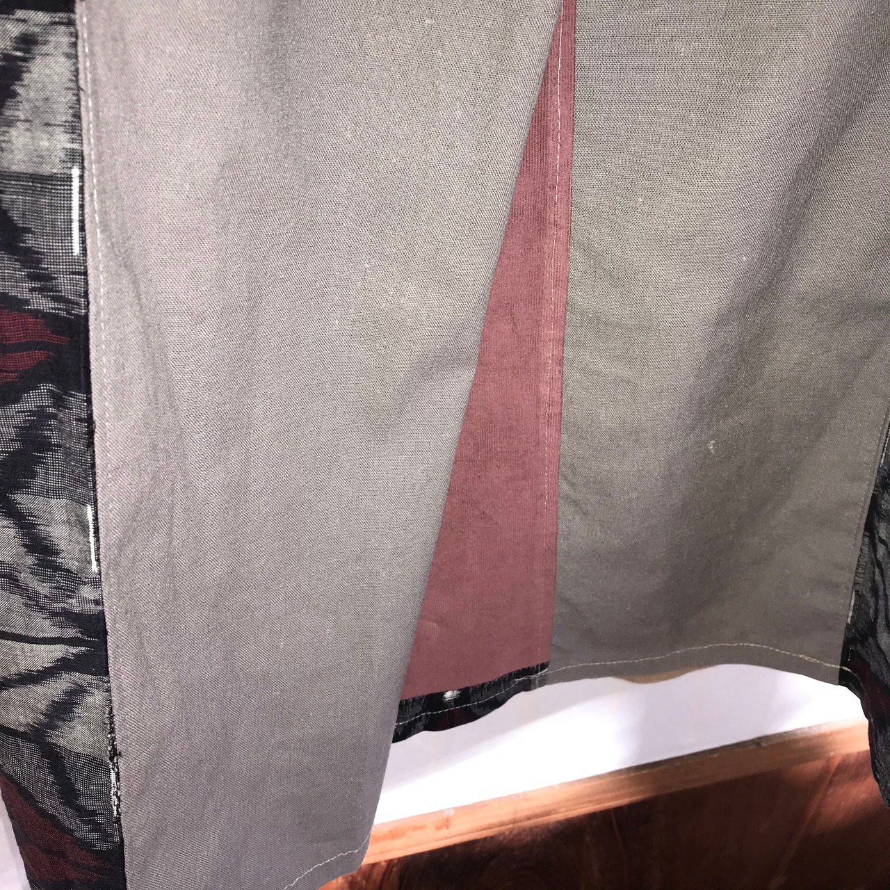 栗染め(鉄媒染)したヘンプコットン生地に、綿のかすり生地とコーデュロイ生地、綿麻生地を組み合わせました。