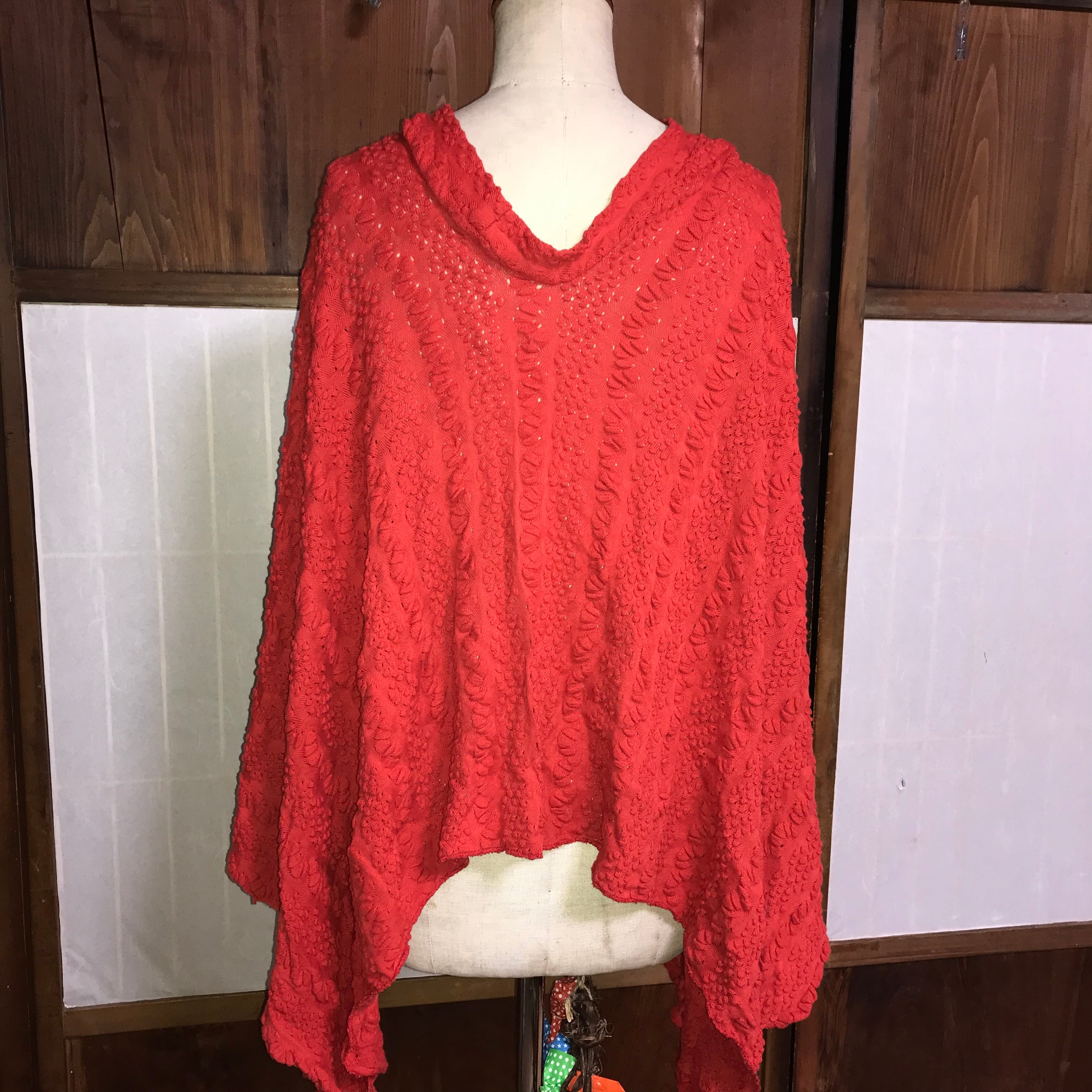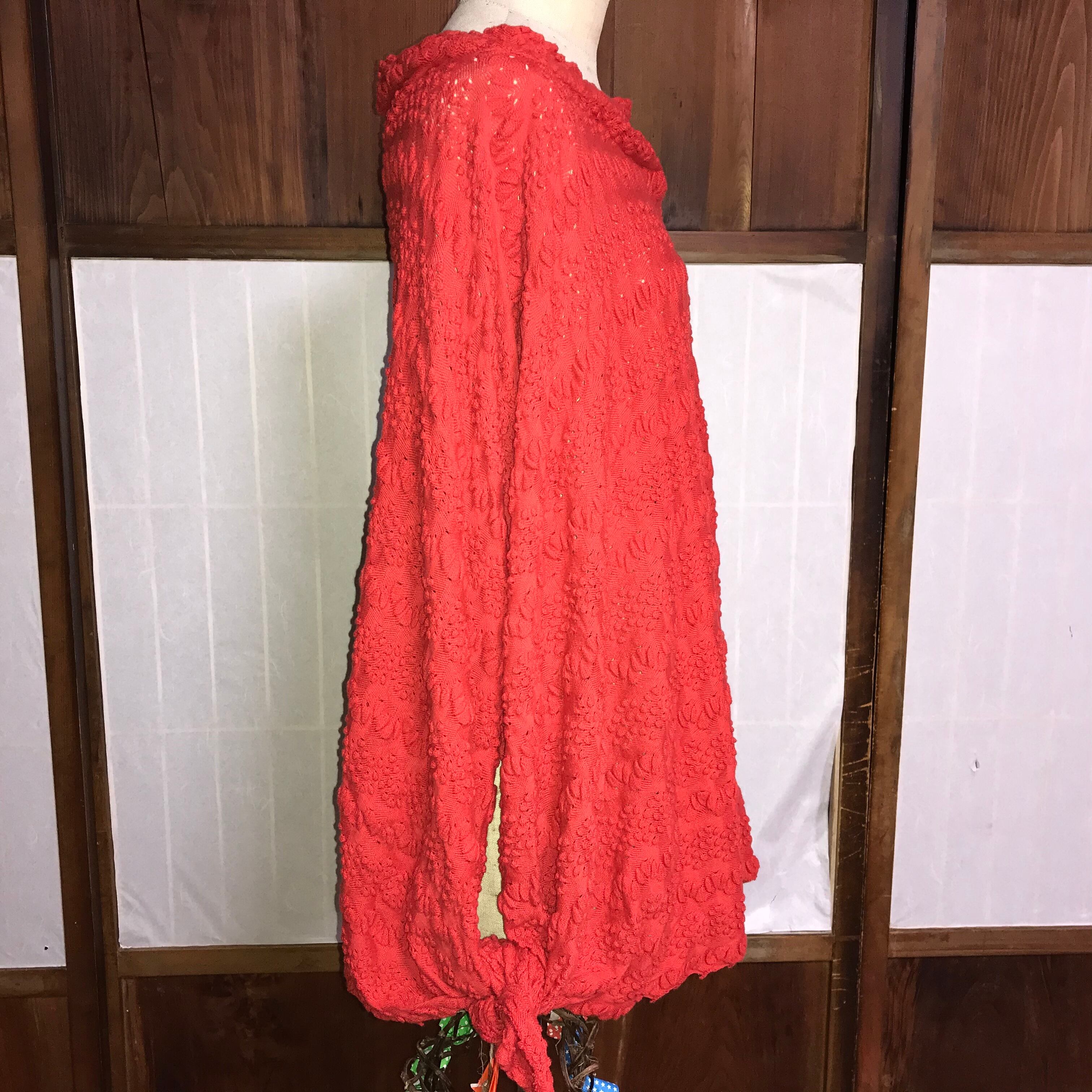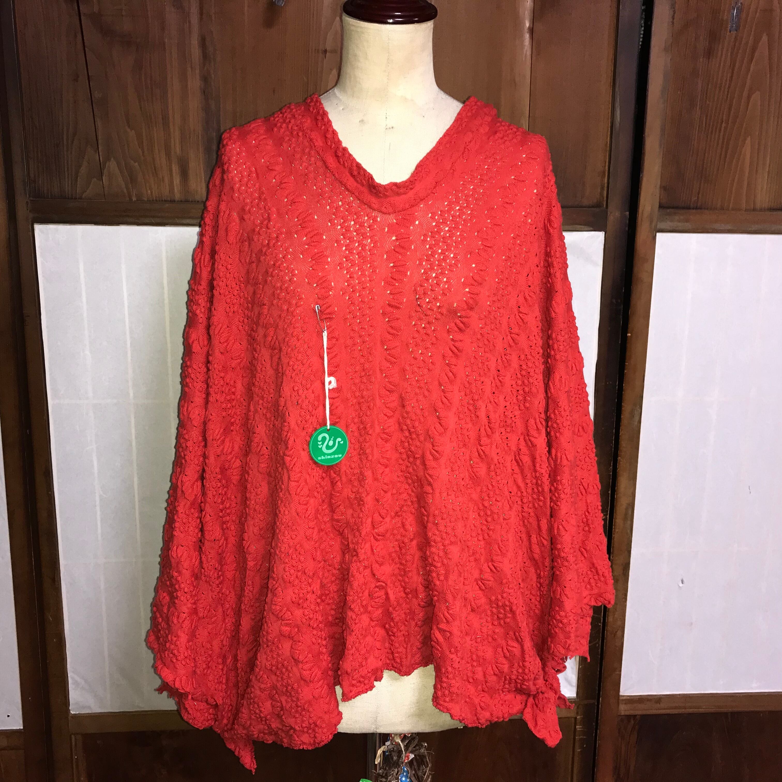 こちらはポンチョですが、裾を両脇結んでもらうとふんわりとしたシルエットになります。
