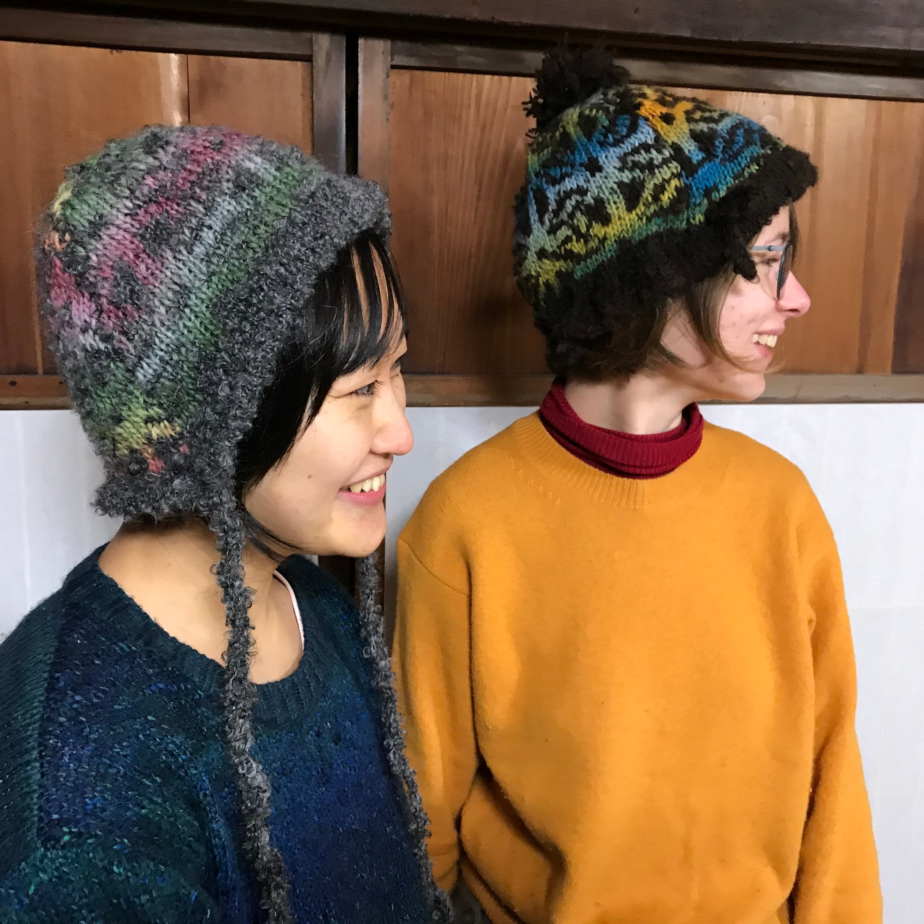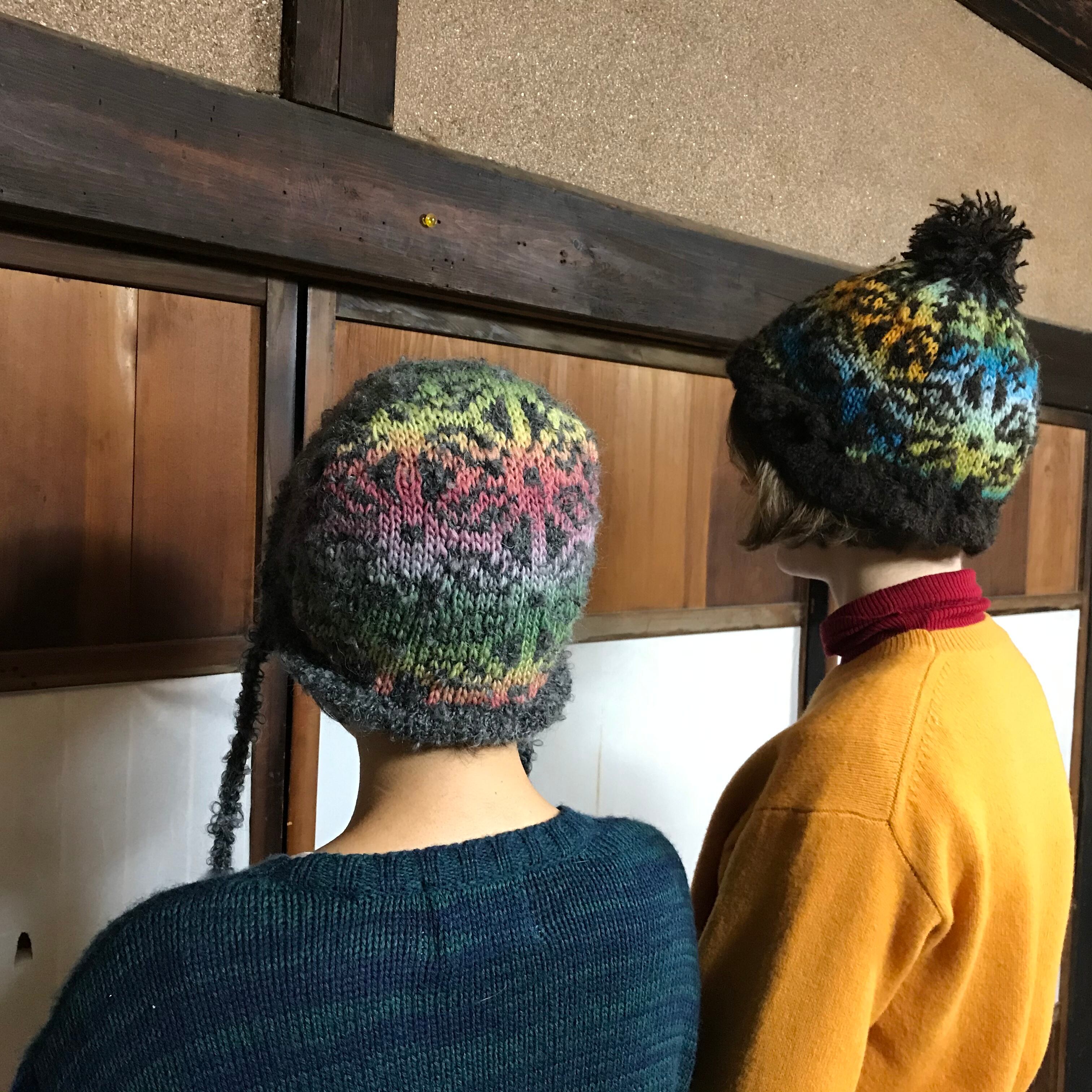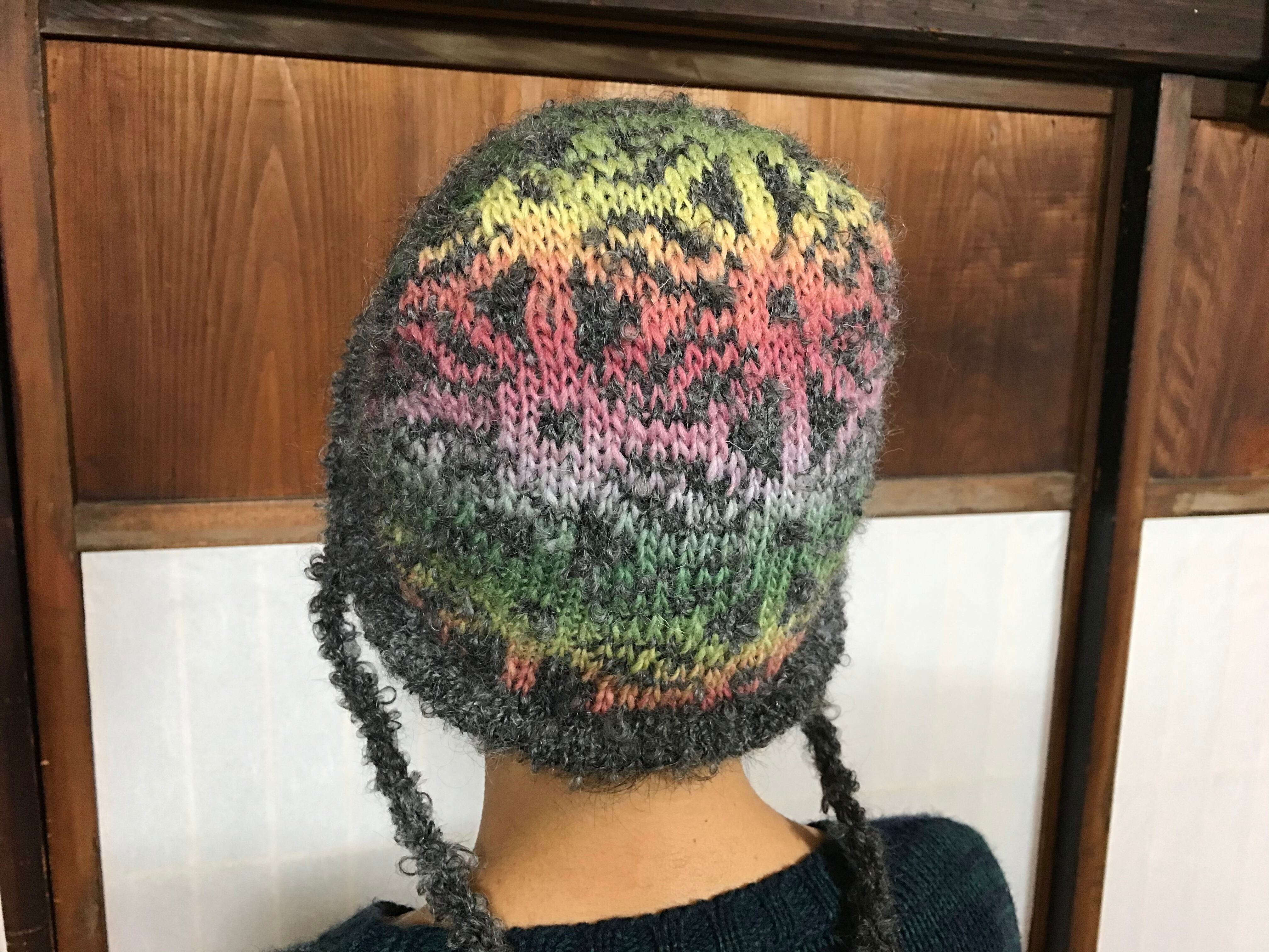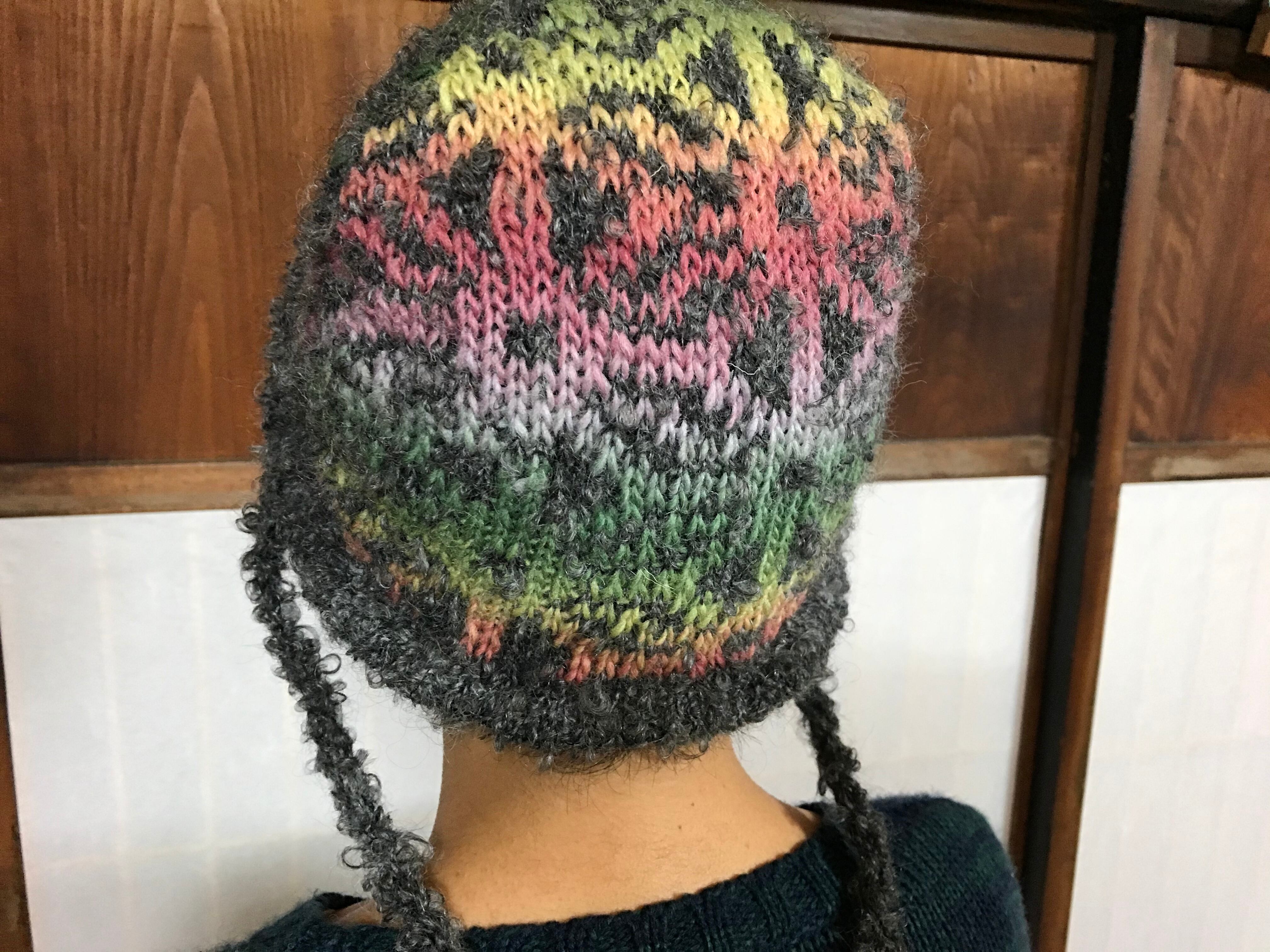 ウール100のグレーのループヤーンと、段染めスラブヤーンで麻の葉模様を編み込みしました⭐︎
