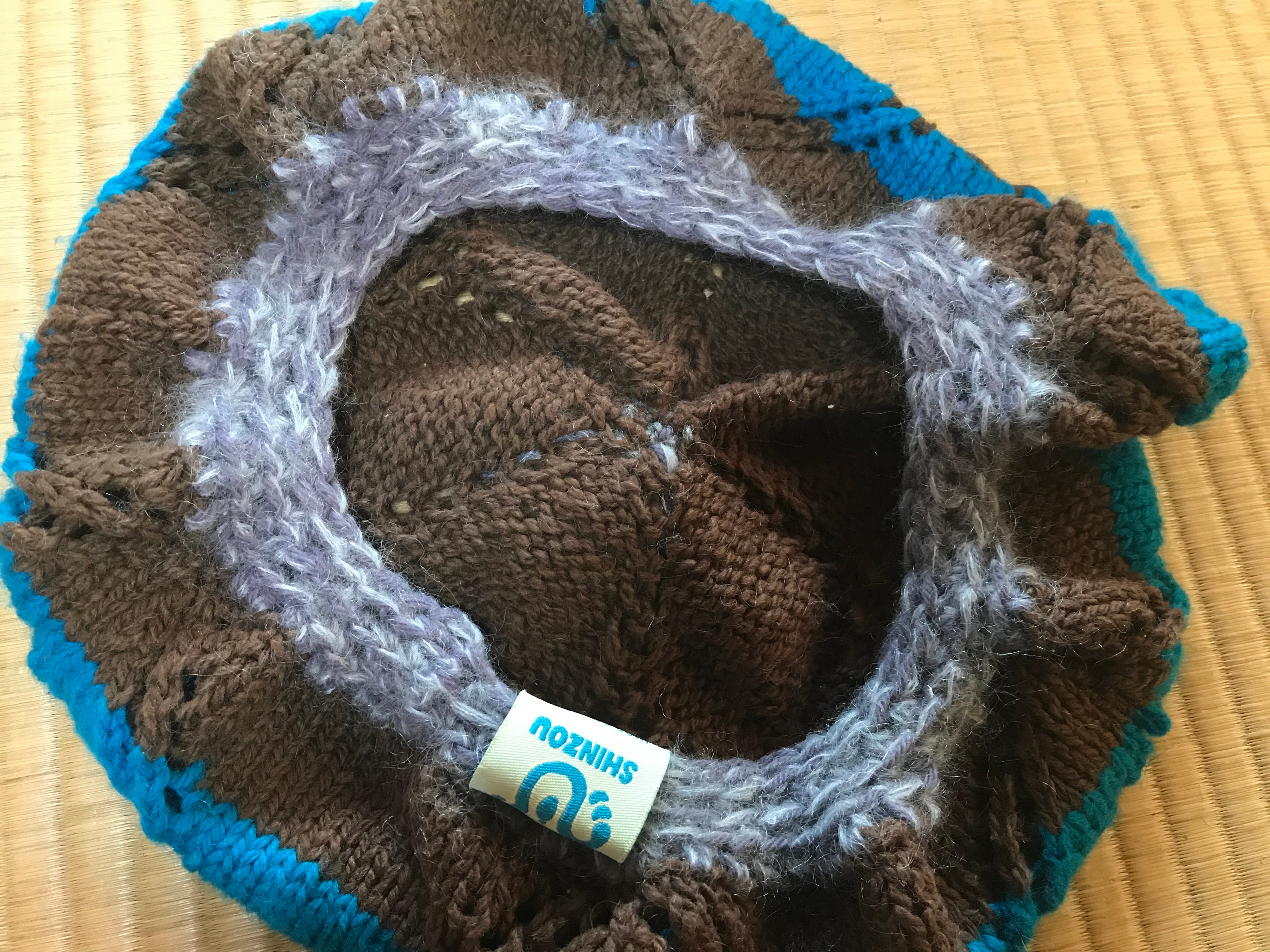 かぶり口と、あたまのてっぺんのポンポンには、モヘアを混ぜてフワフワにしました。